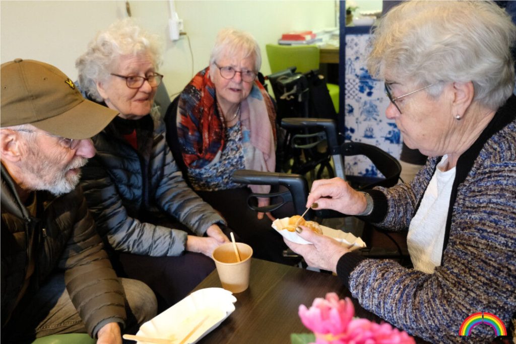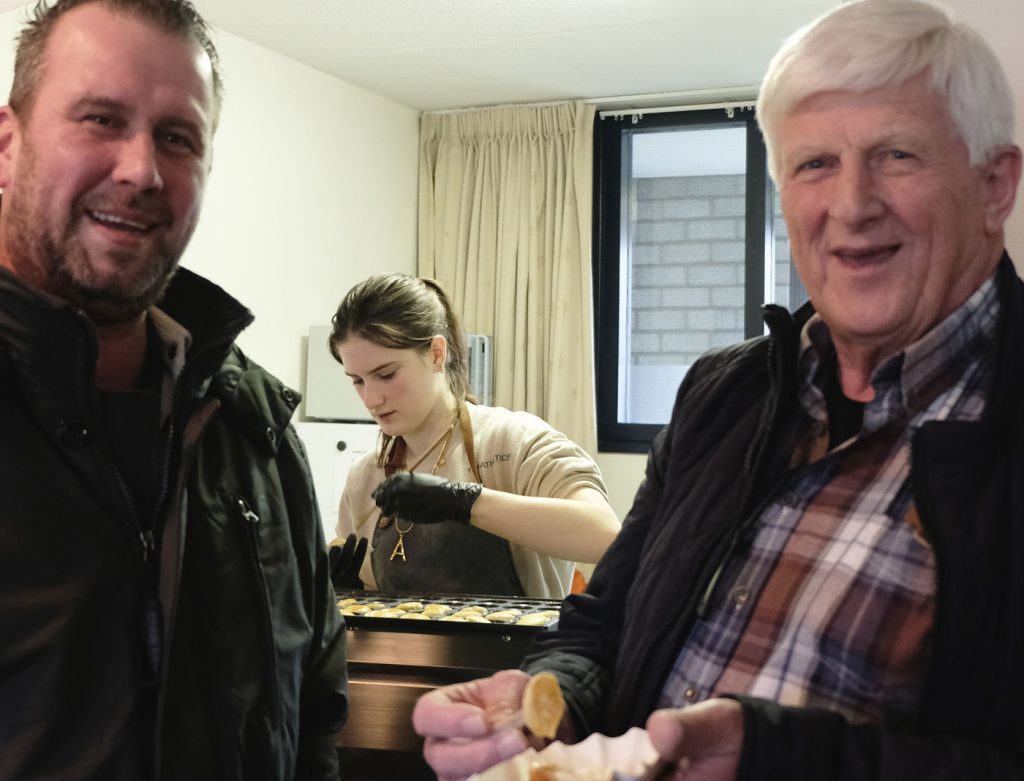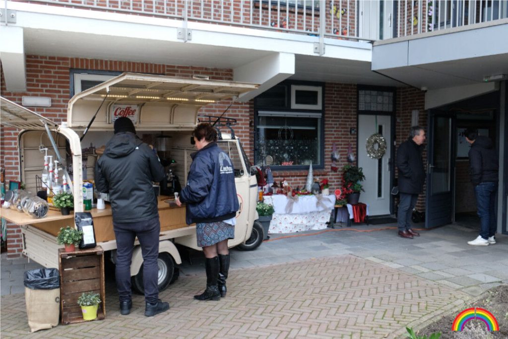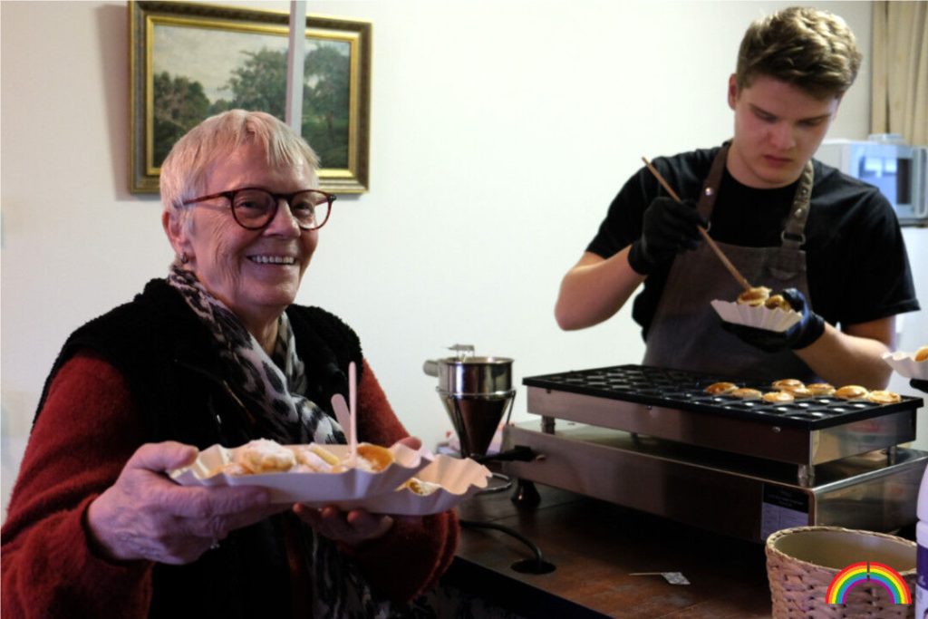 Bij de afsluiting trakteerden wij de bewoners op verse poffertjes en koffie.