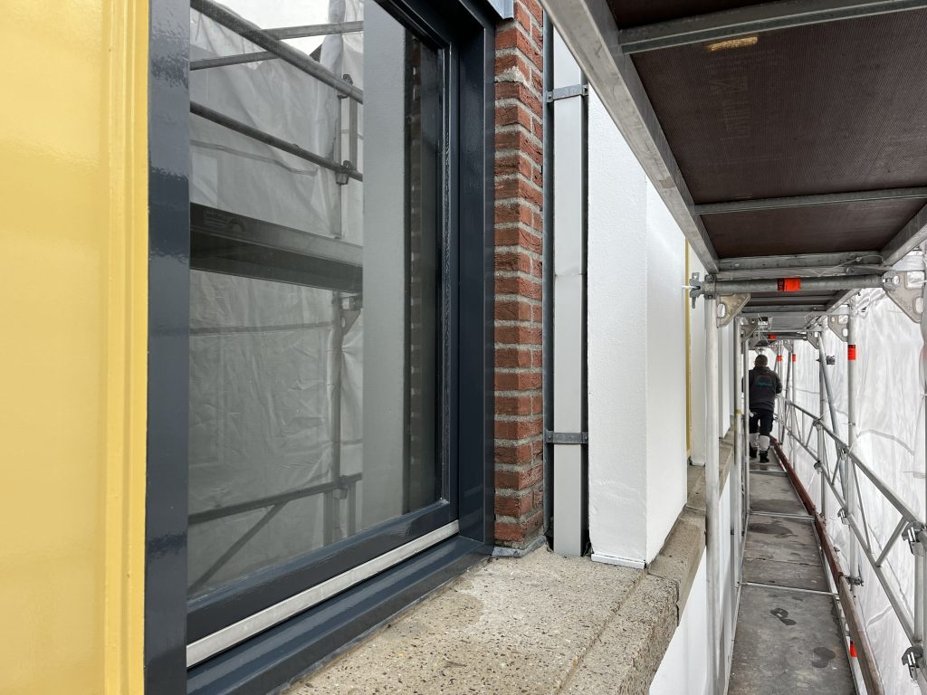 • Schilderwerk: uitvoeren van buitenschilderwerk aan houten gevelpuien en pleisterwerk.